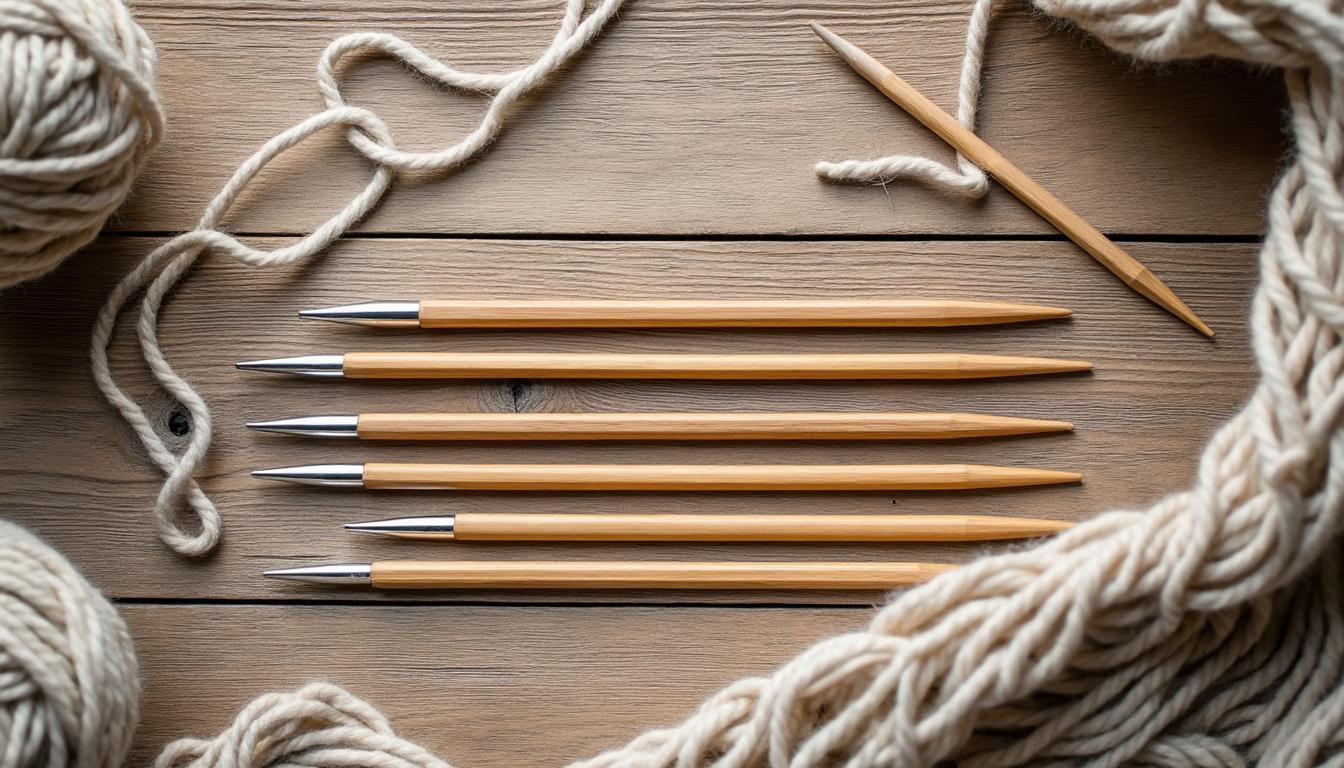 Pour un premier projet, optez pour des aiguilles droites ou circulaires de taille moyenne (intermédiaire), entre 4 et 6 mm, en bambou ou bois pour un confort optimal.